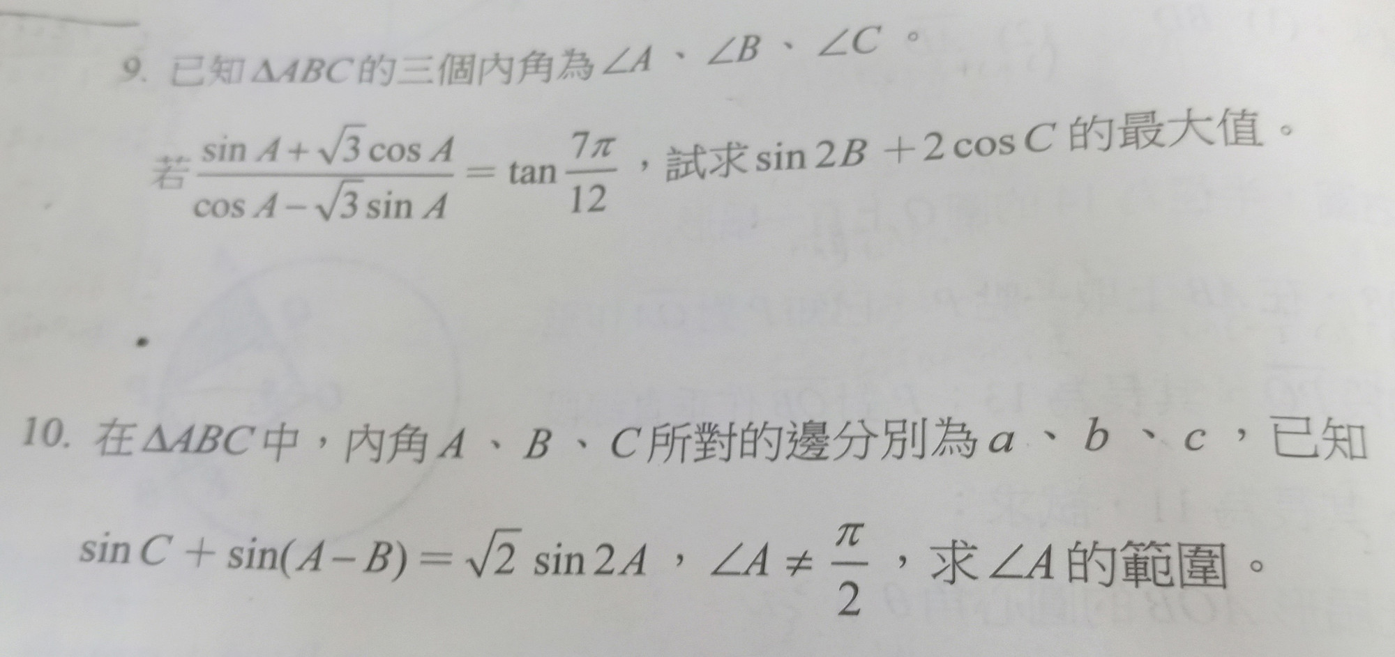 第9、10題怎麽算?
