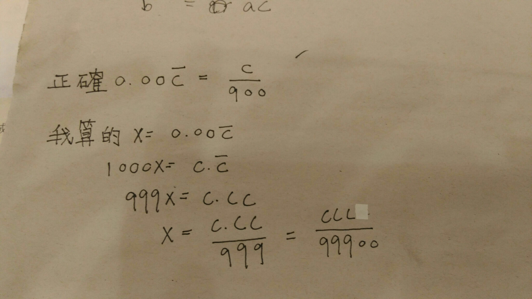 欲將循環小數化為分數 我算的與正確解答不符 請問原因 我算的是不是也可以