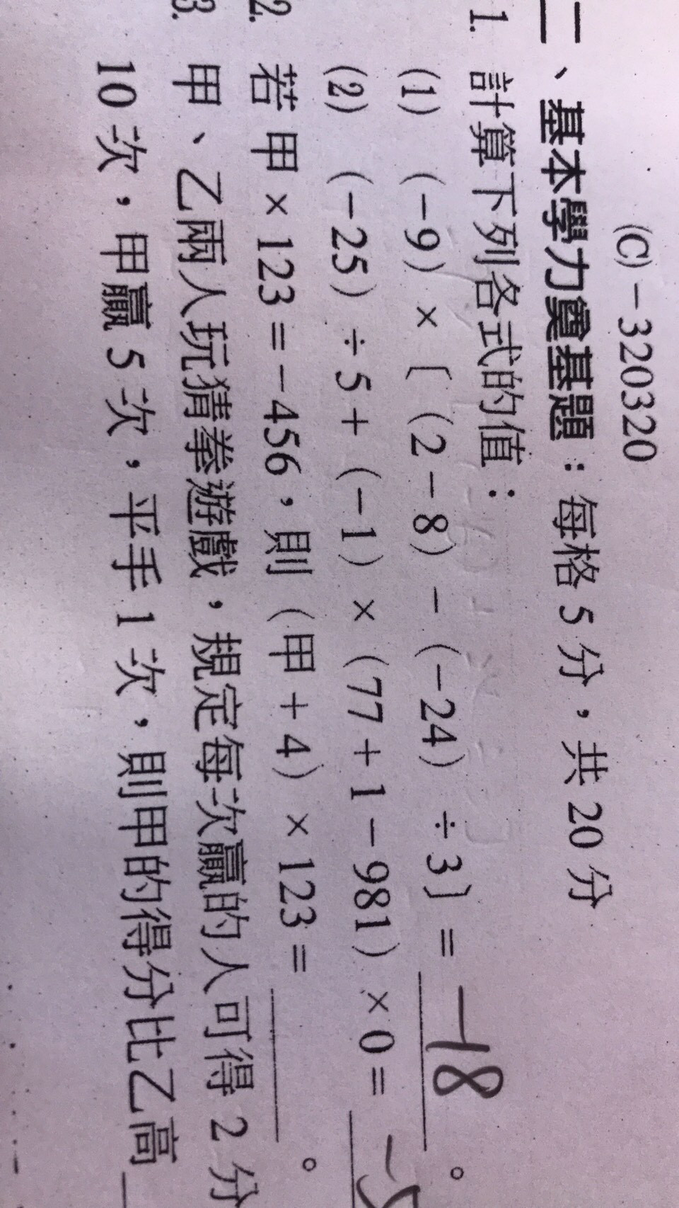 甲乘以123那題