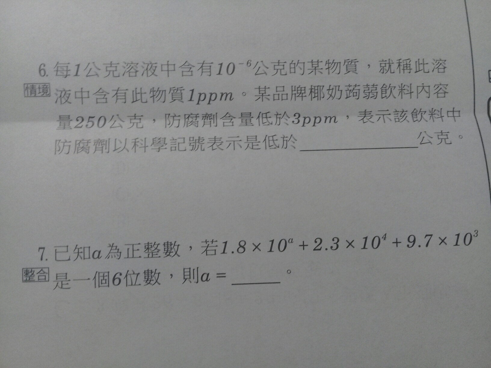 請問6、7題怎麼寫算式?