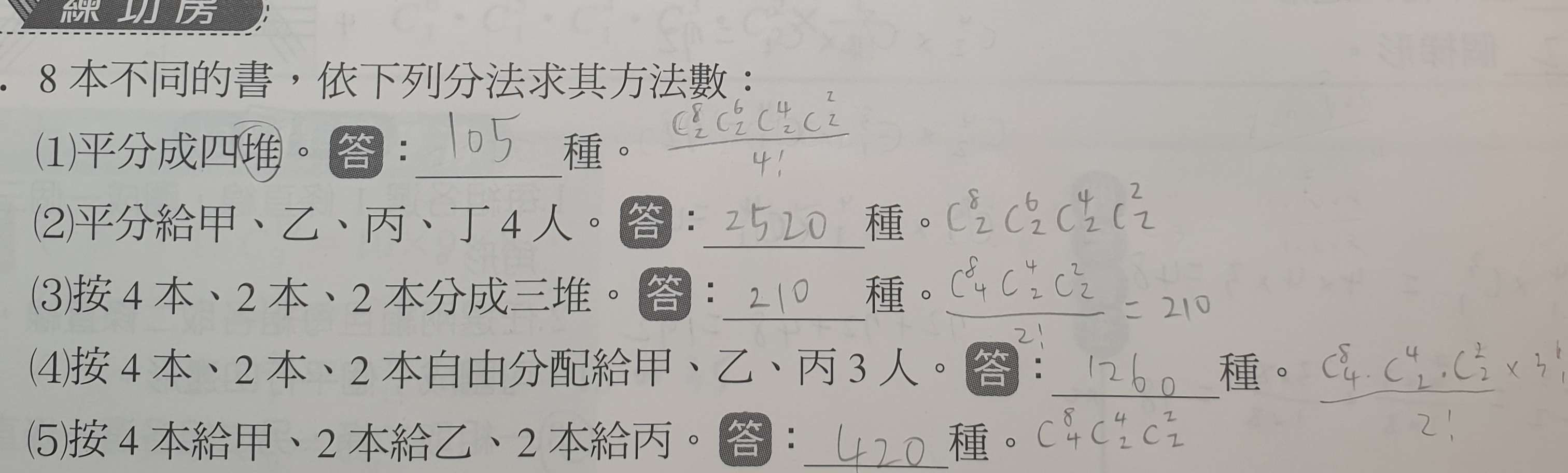 4. 分配給甲乙丙的話不是算分組了嗎?為什麼還要÷2!
