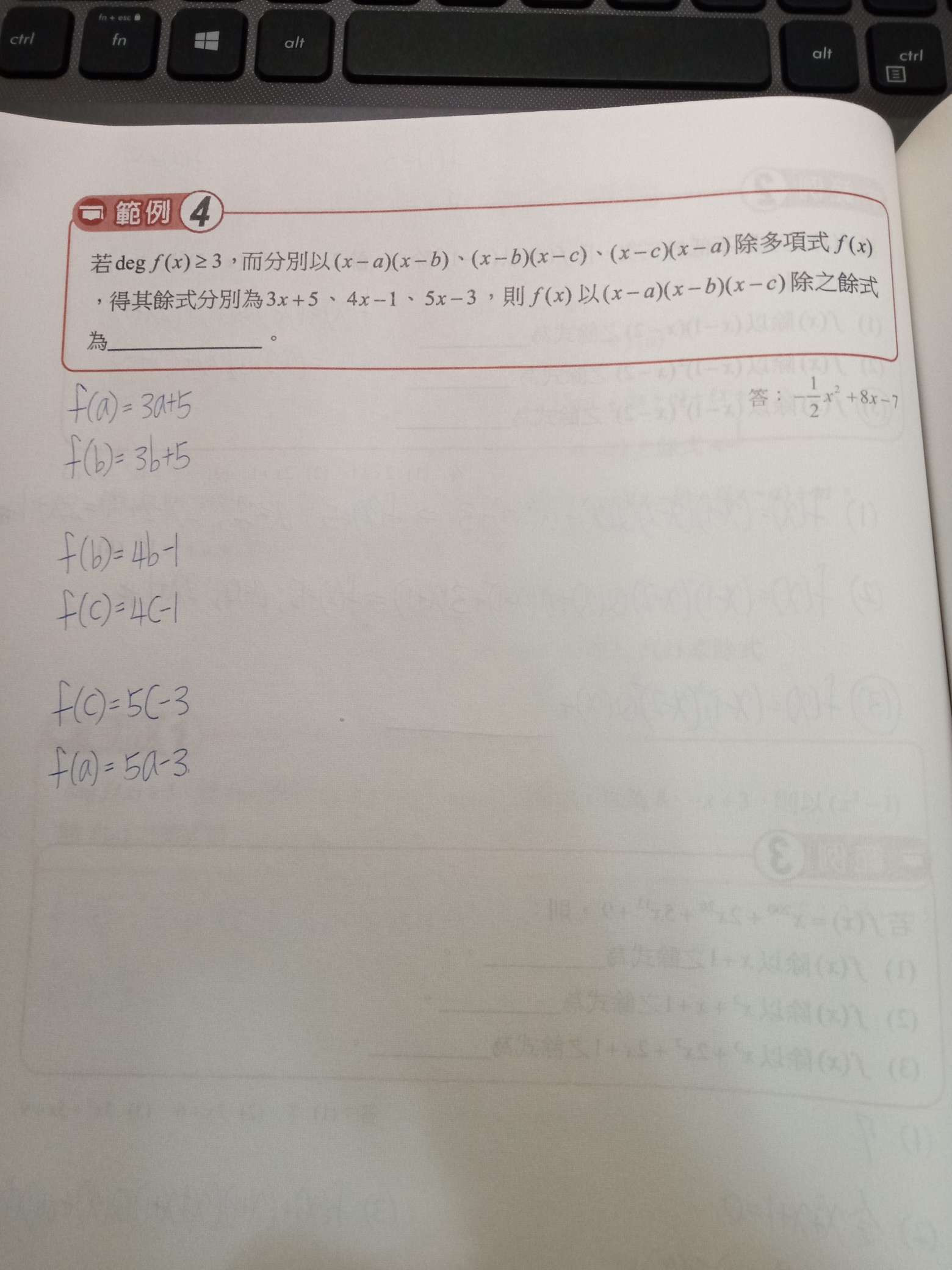 老師,請問為什麼把a b c分別帶入後餘式會相等?