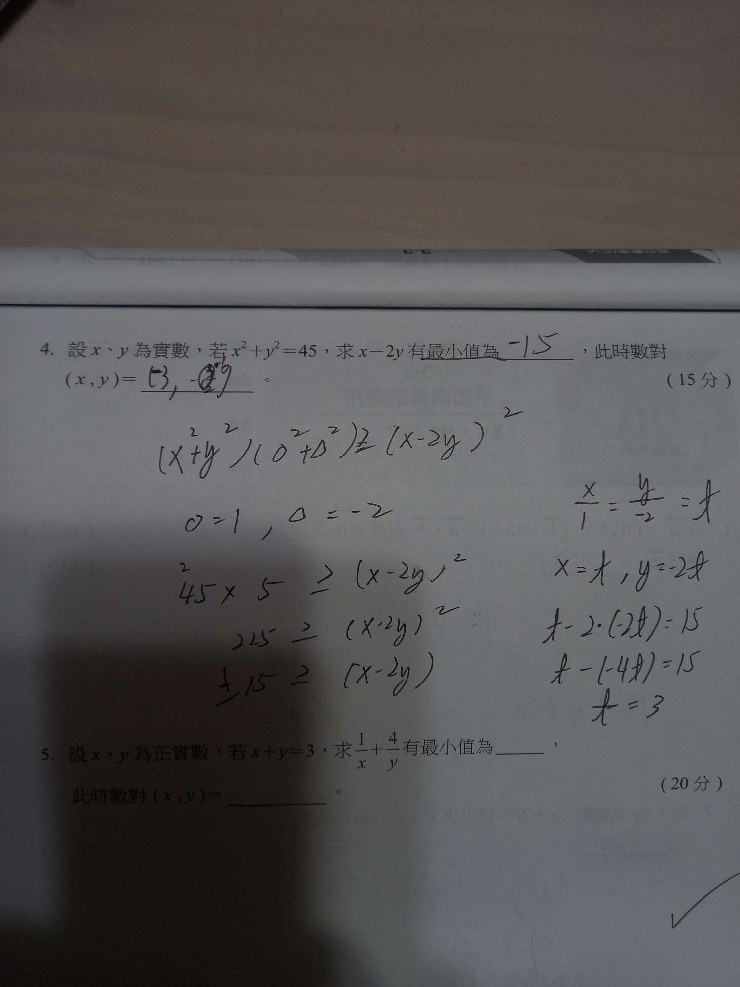 第四題為何最小值是負15