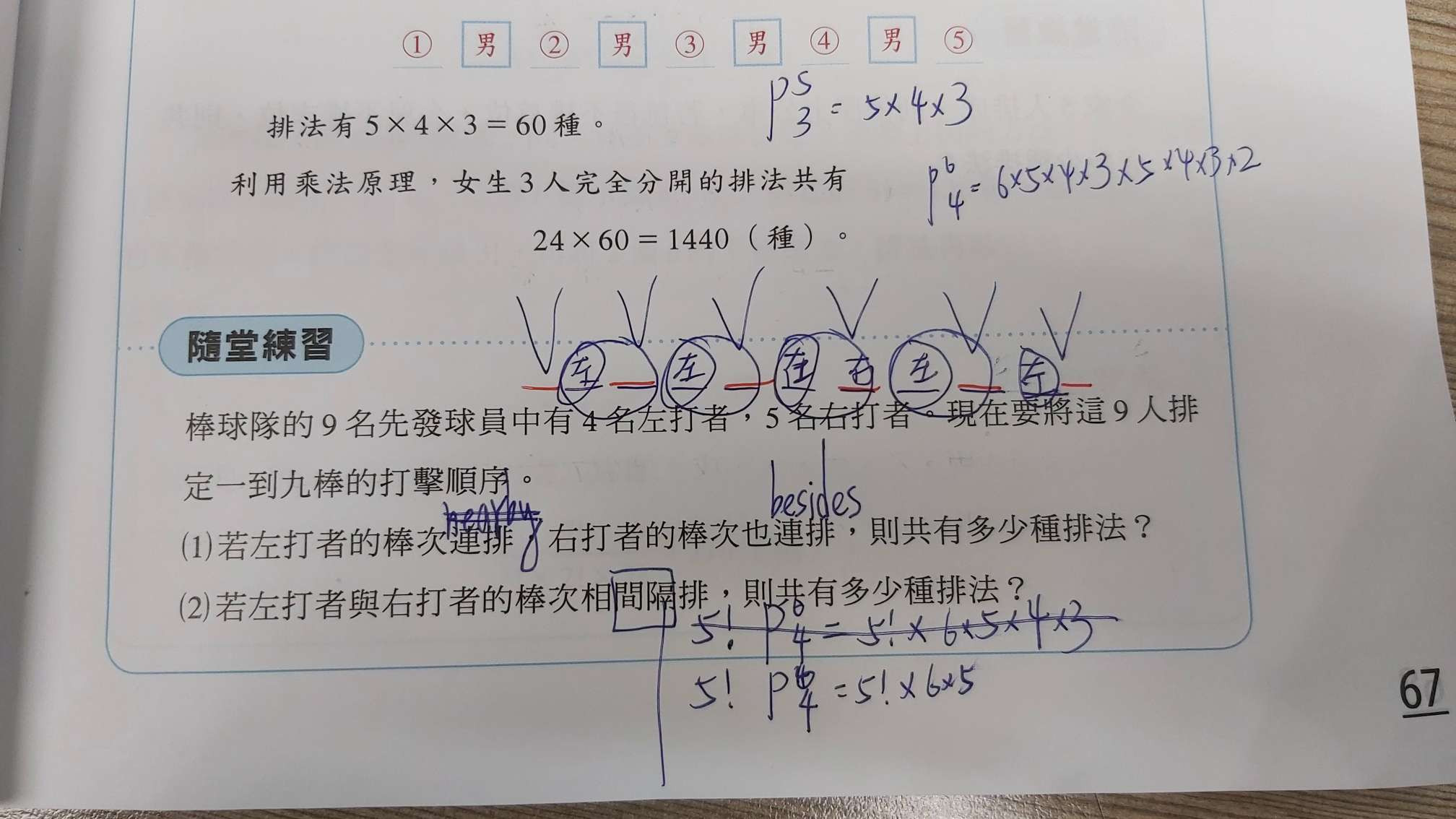 棒次連排是什麼意思? 棒次相間隔排呢? 求解題