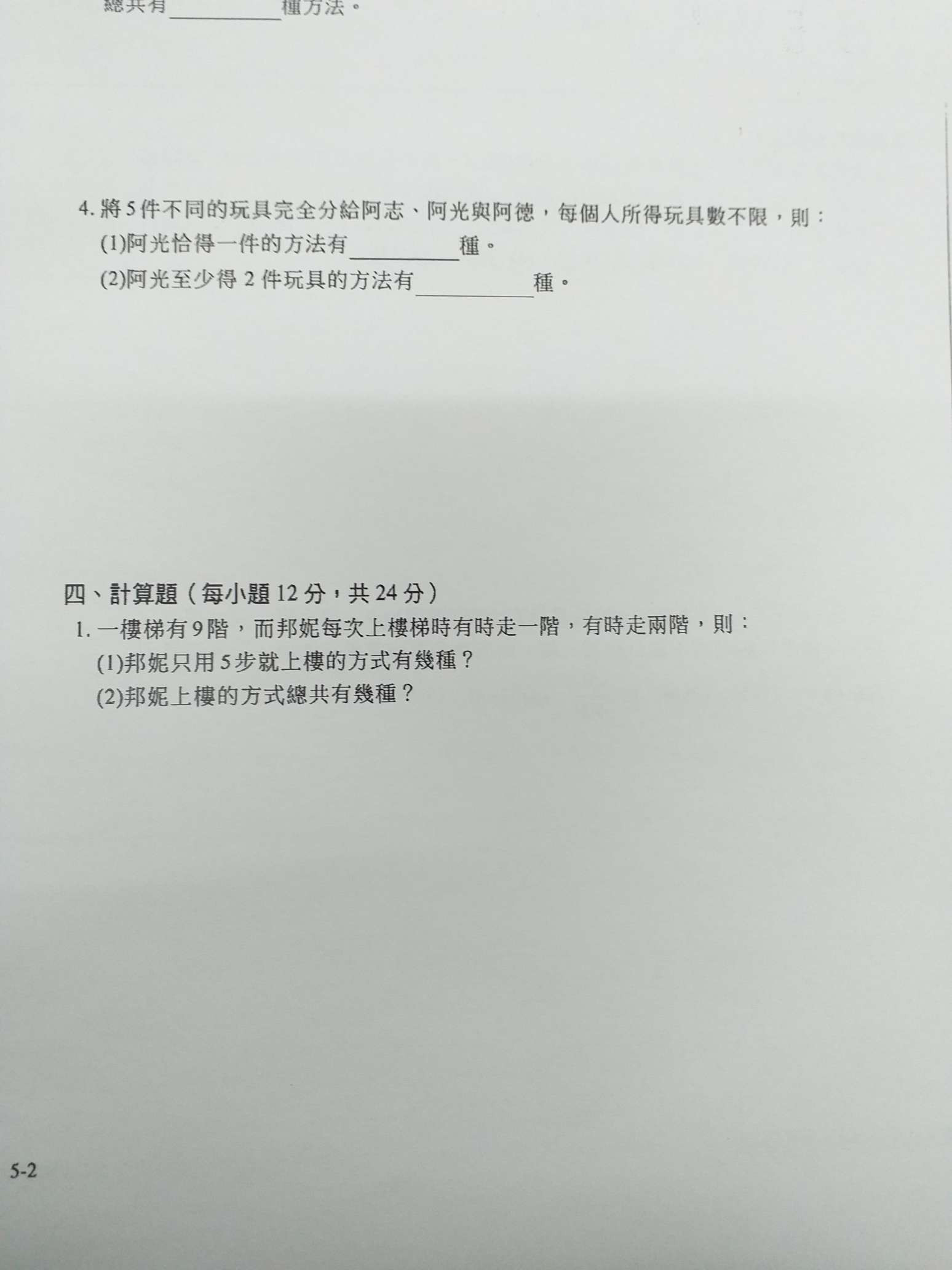 第四大題的第一題 急需 謝謝