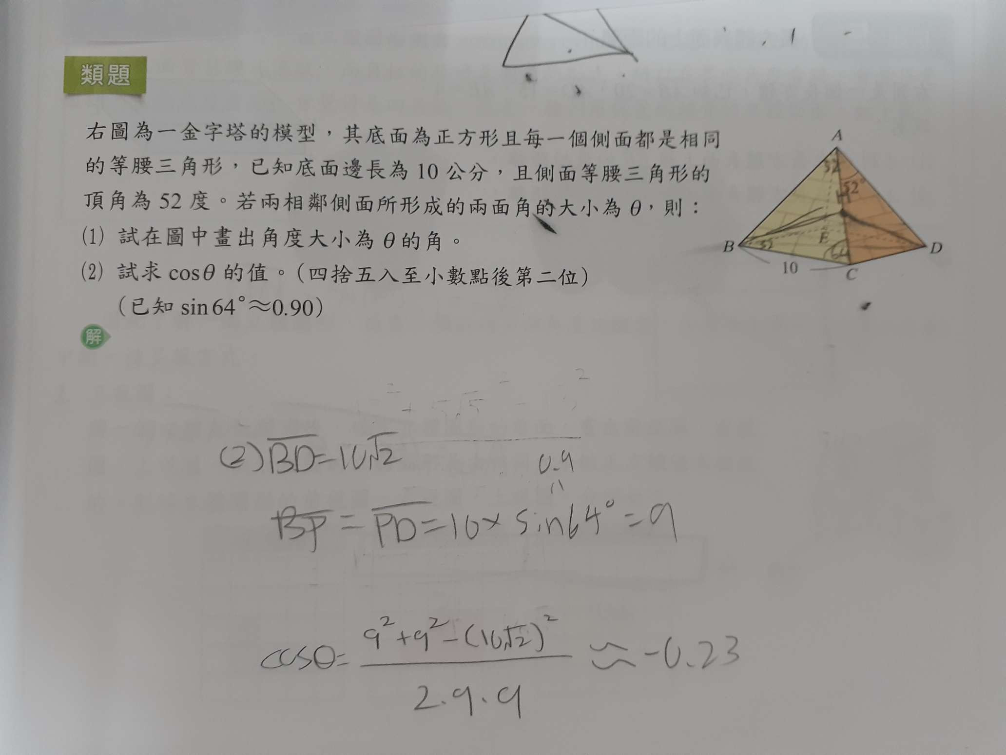請問10乘以sin64得出得出9(BH=HD)是什麼定理?