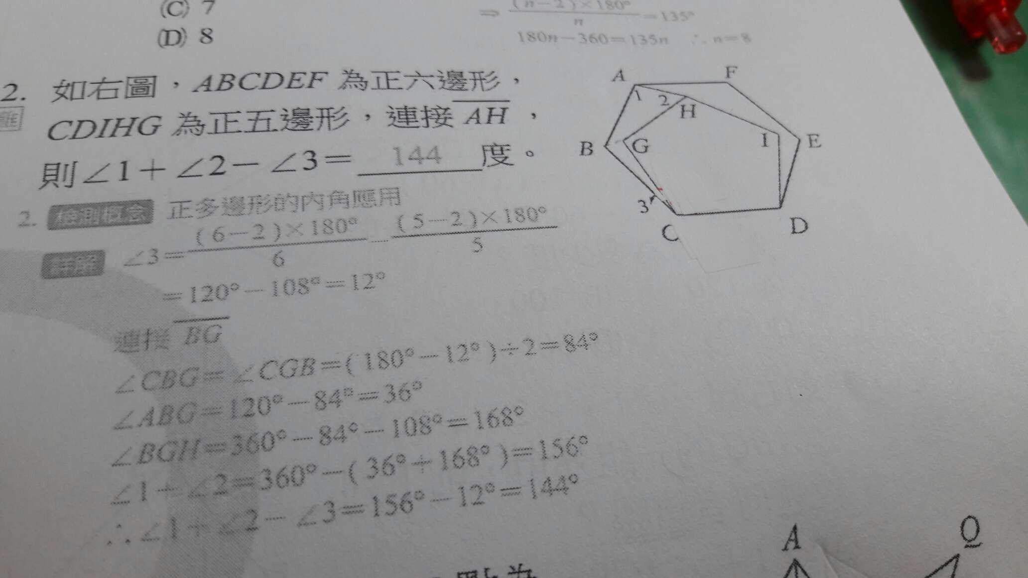 請問第2題的算式中,角CBG為什麼會等於角CGB?謝謝