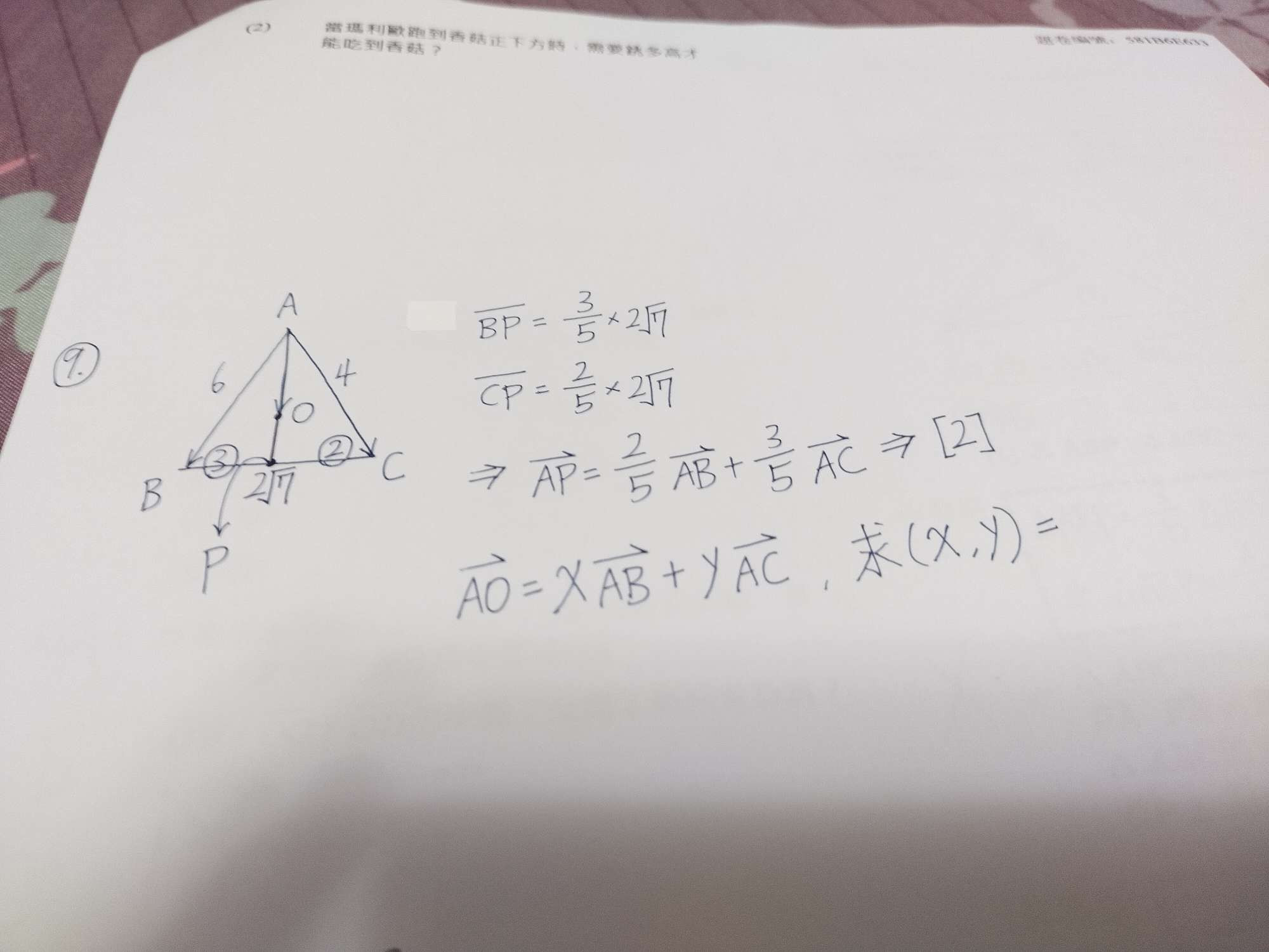 老師,請問有沒有清楚易懂的方式解出AO=xAB+yAC?