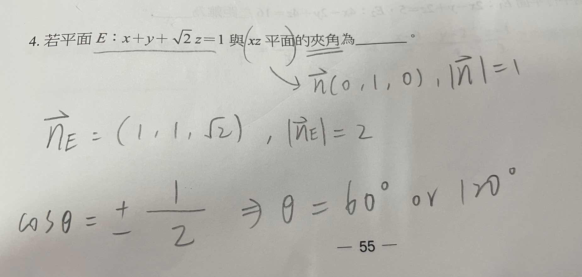 想問這題應該要有兩個答案對嗎? 因為解答只有60度 謝謝老師
