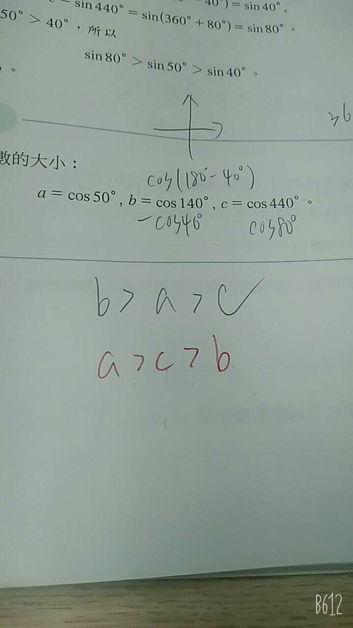 為什麼不是b為最大,b的cos值不是最小嗎?