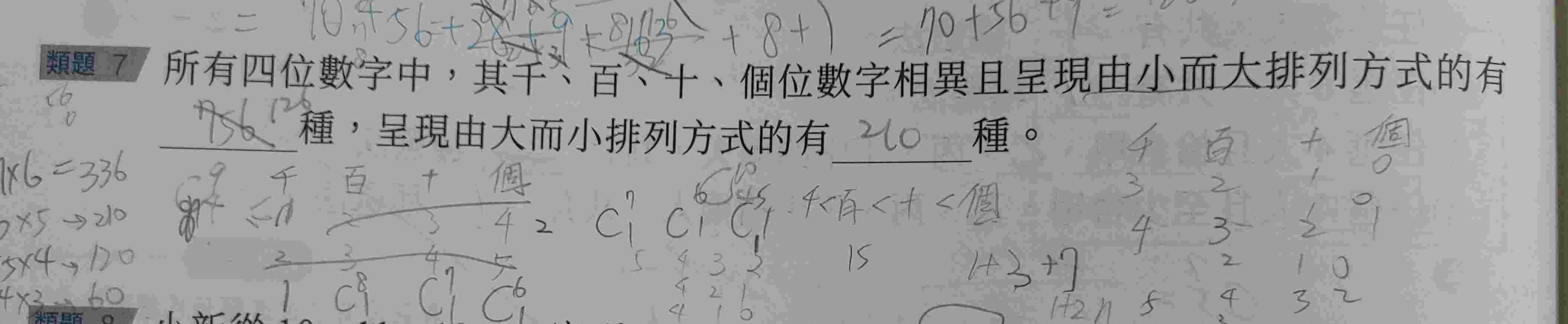 為什麼由小到大是C9取4,由大到小是C10取4