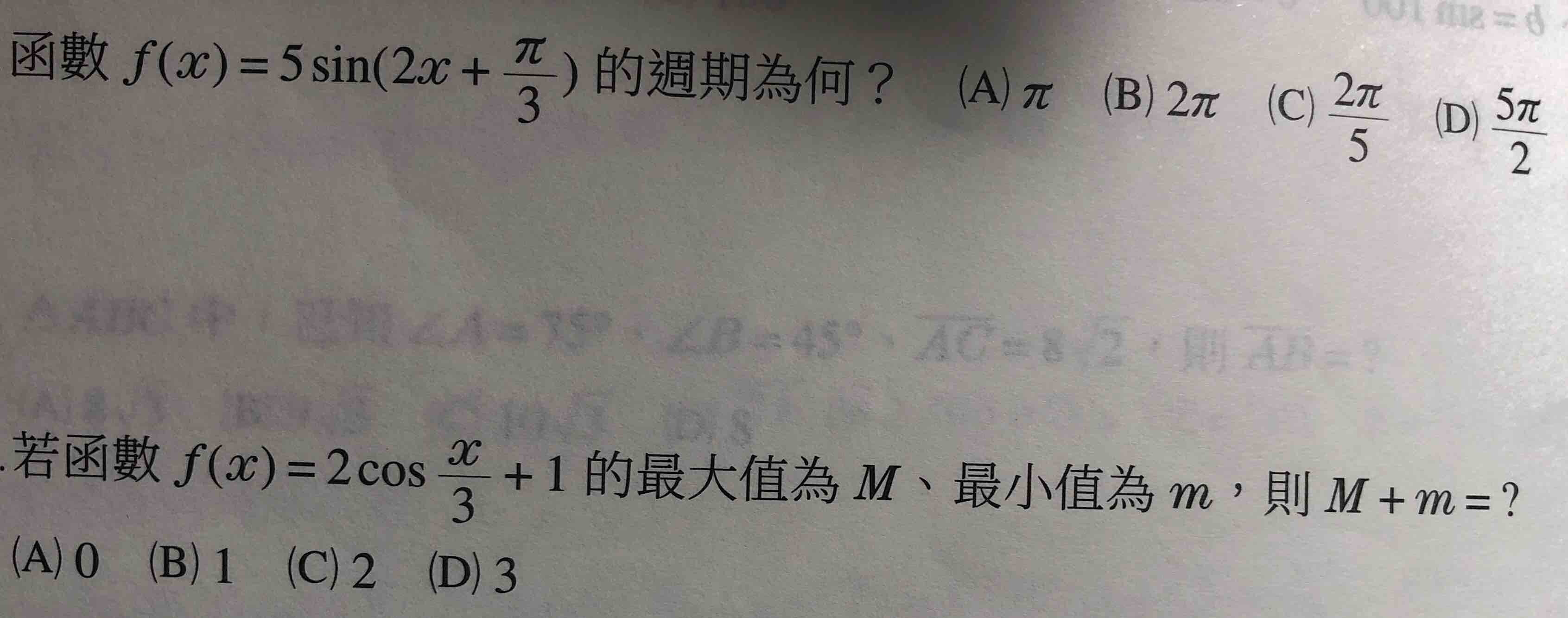 請問這兩題怎麼算?謝謝