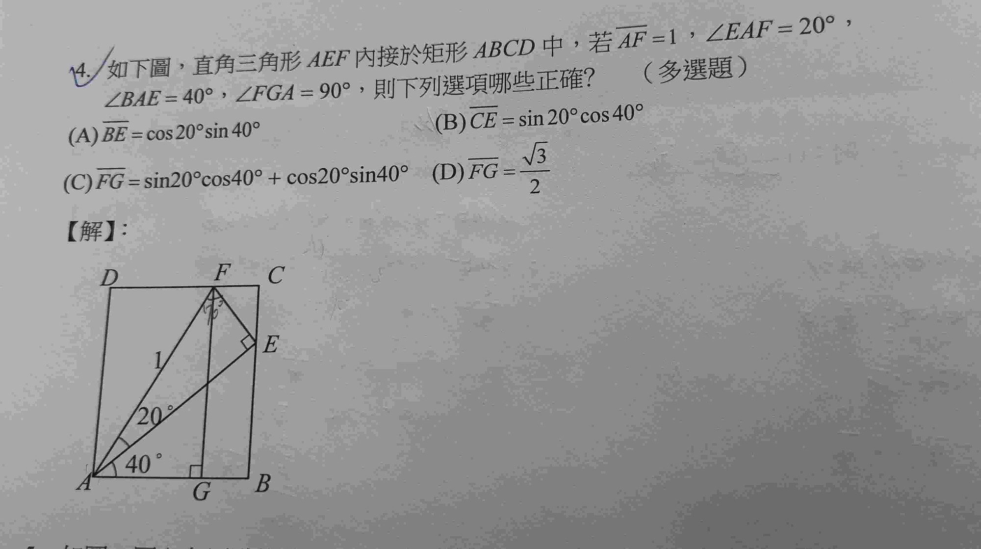 要怎麼算cos20°×sin40°?