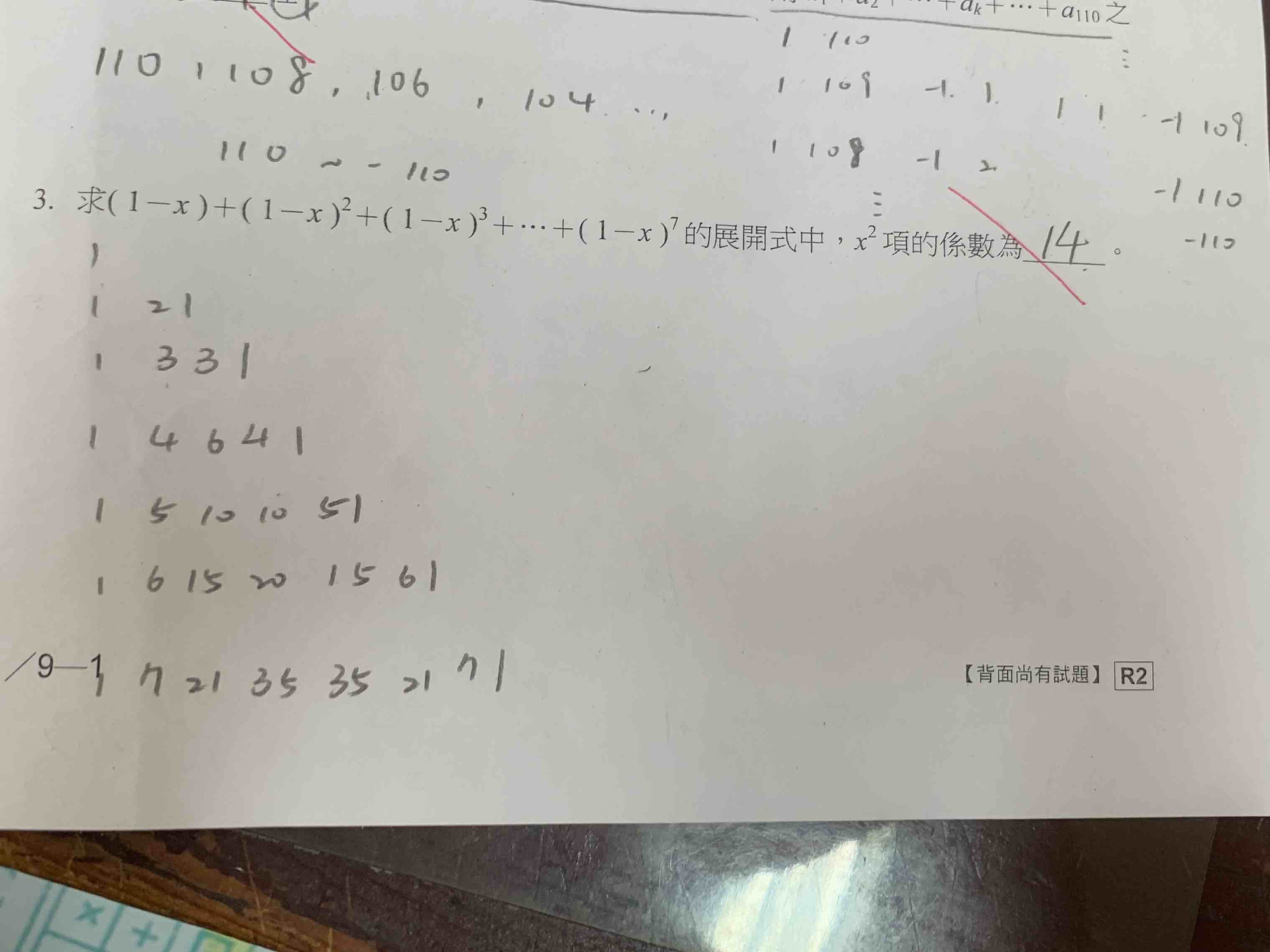 想知道這題用巴斯卡三角形該如何解
