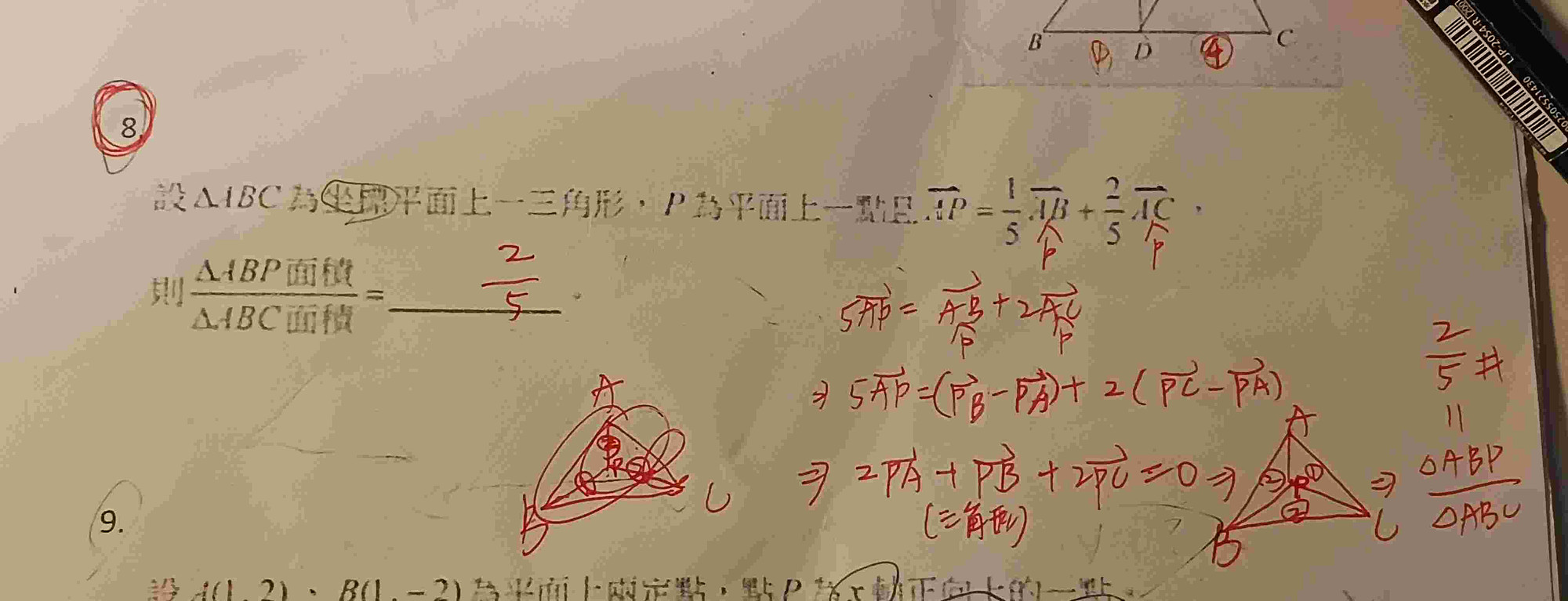 請問2PA+PB+2PC=0後面三角形裡面的221是怎麼來的?