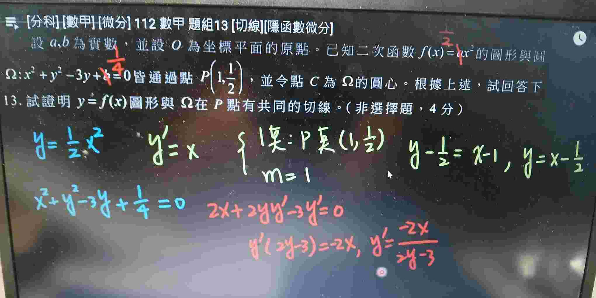 第13題,老師說可以直接隱函數微分,但我有點看不懂,麻煩老師講解