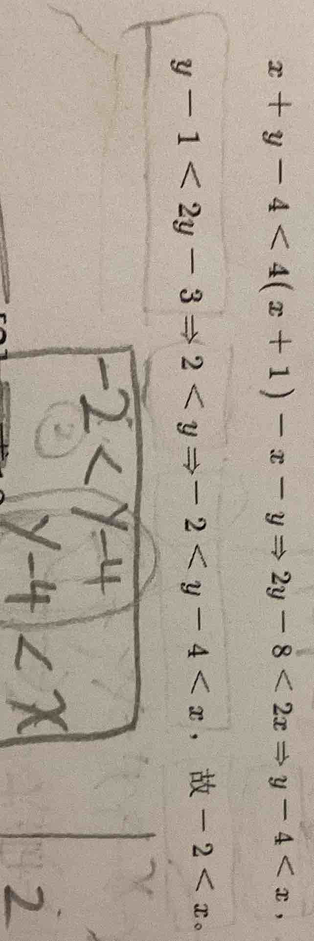 請問為什麼答案裡的y-4不見了,答案直接x > -2 ?