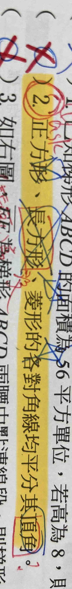 解析說長方形的對角線無無均分頂角?請問為什麼阿?還有頂角指的是哪裡?