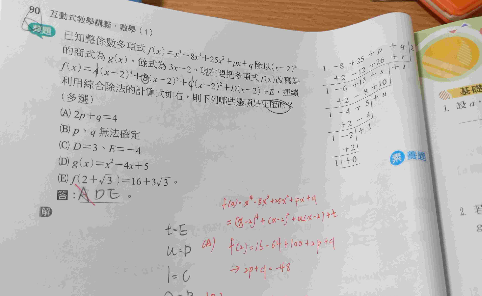 怎麼知道2p+q=-48的?