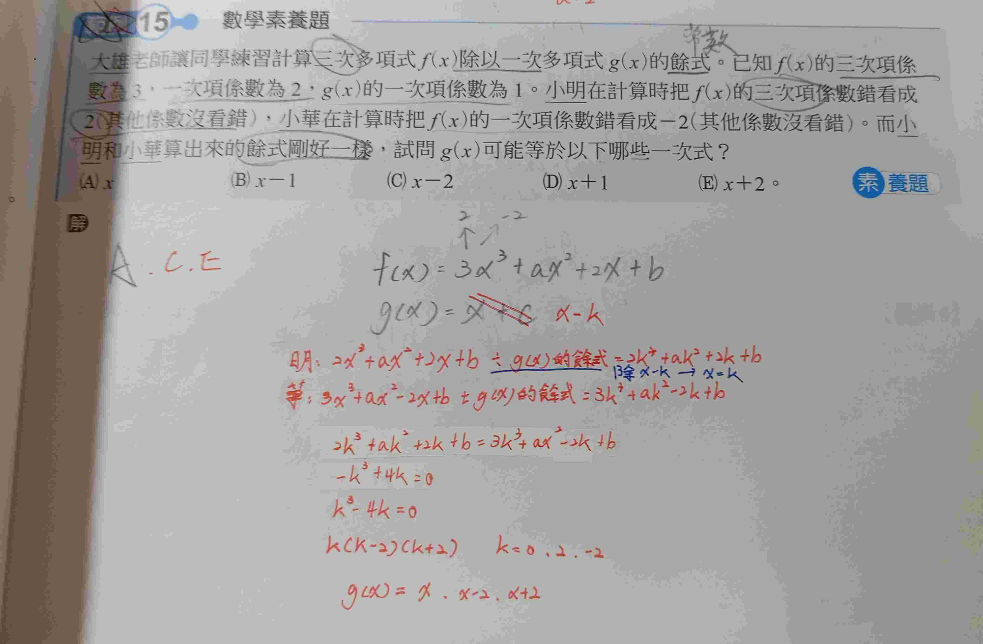 我知道g(x)的x係數是1,但是為什麼要加-k?